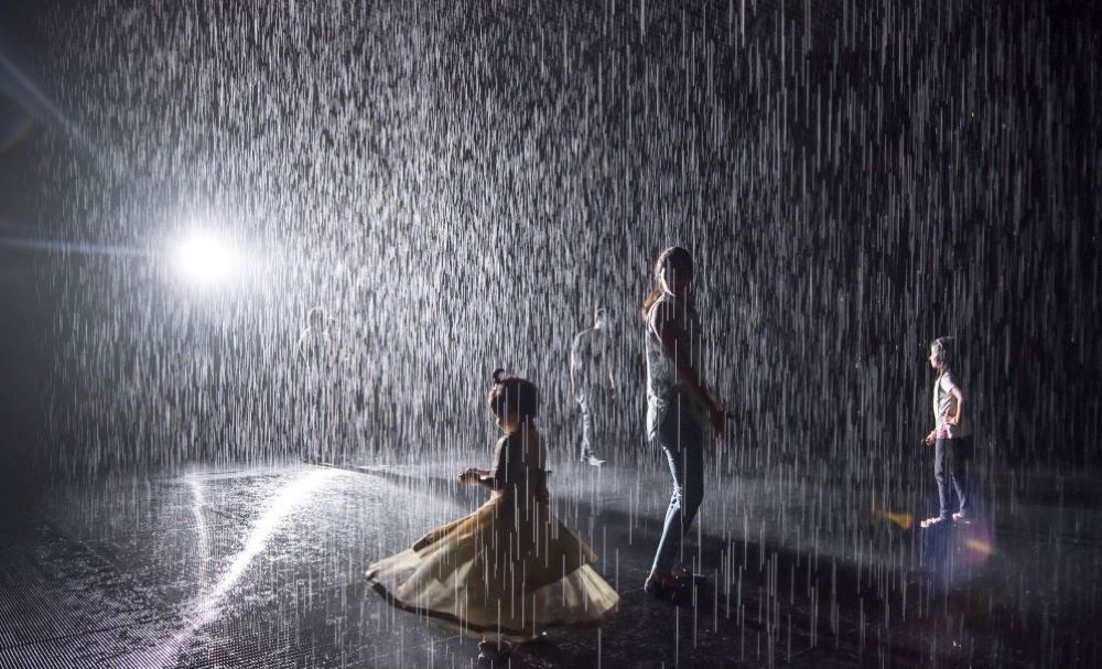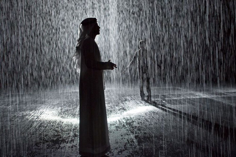 Sharjah: Located in the Sharjah Art Foundation, Rain Room is a permanent art installation where motion sensors on the ceiling prevent the water droplets from falling on people, clearing a sort of path, roughly six foot in radius.