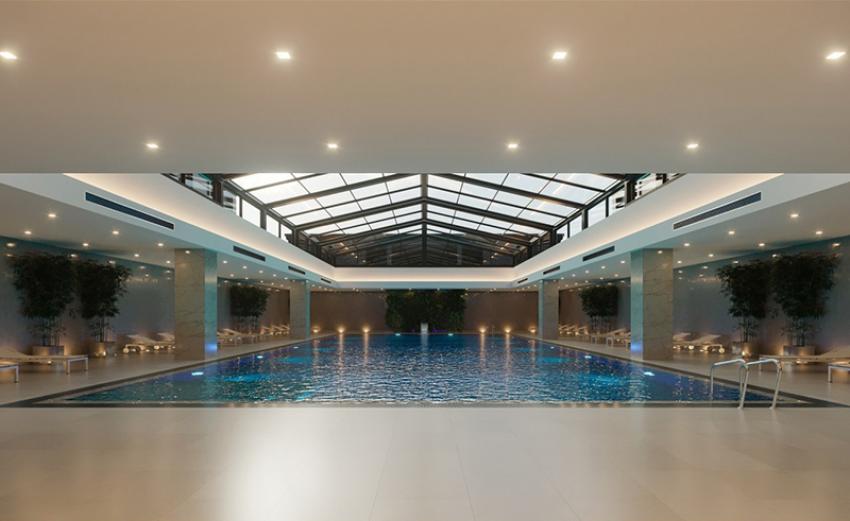 It has a swimming pool, sauna and massage rooms. The building consists of seven floors and an attic (on the 8 floor).