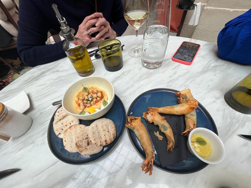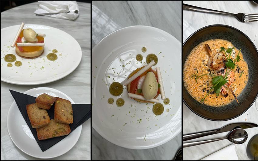 So choose your spot- outside on the terrace, or in the courtyard-patio or at the bar, besides under the grand fresco ceiling of Jardin des Sens. I loved my meals, however, in the beautiful inner courtyard. It offered me a relaxed gastronomic bistro experience under the flowery canopy and with natural light flooding in.