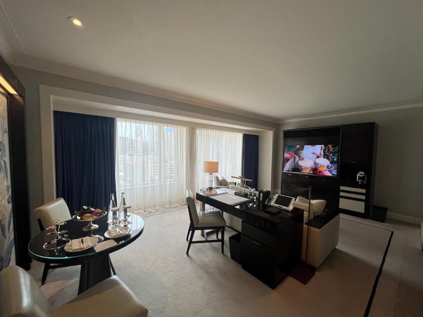 They have an executive desk with printer scanner and fax and window-side dining table for two, custom Pratesi linens, individual thermostat controls, extra-plush bathrobes.