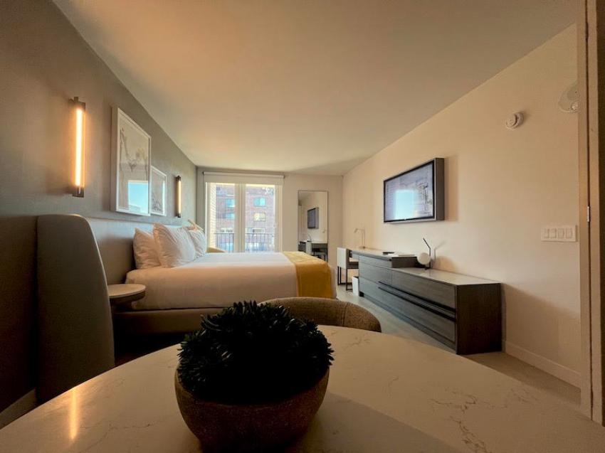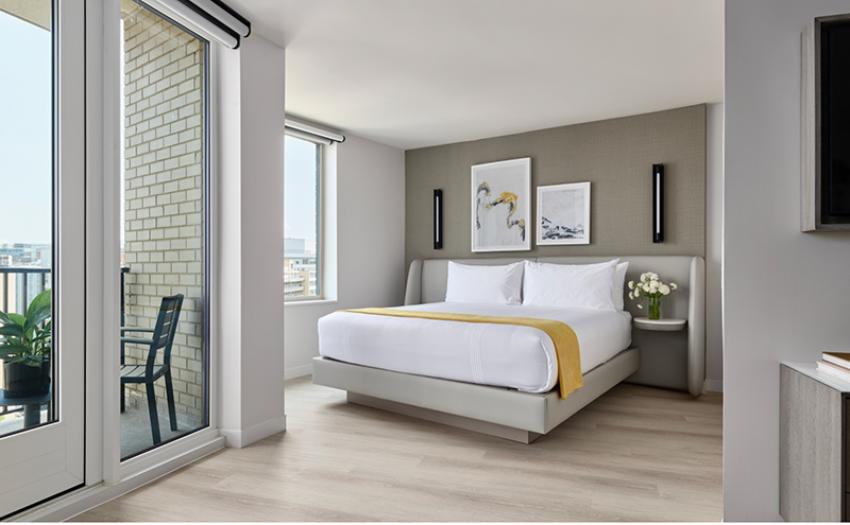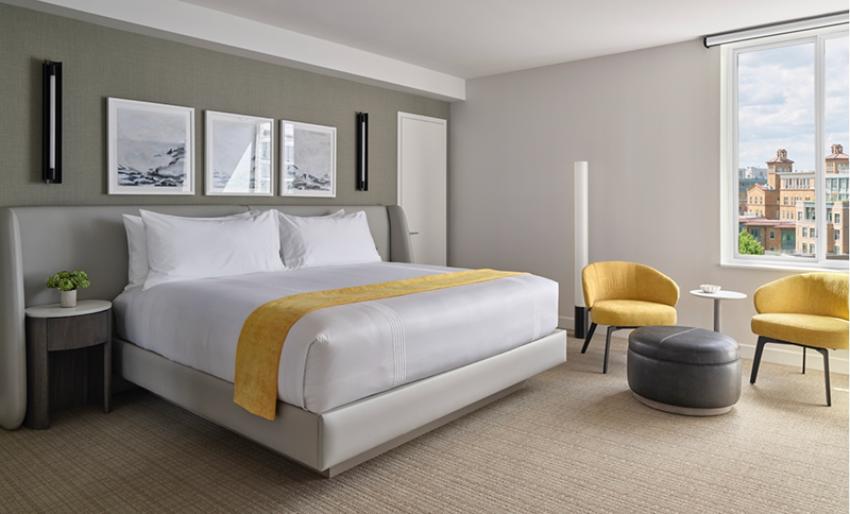The hotel also has luxury penthouse suits with panoramic views. "Sweeping views and luxurious residential-style amenities await in our 880+ square-foot Penthouse One Bedroom Suites, where guests can settle into Foggy Bottom with a panorama of the sophisticated surroundings. Check emails with ease in the sleek workspace, then step out onto your private balcony for fresh air and sky-high views" the hotel boasts.